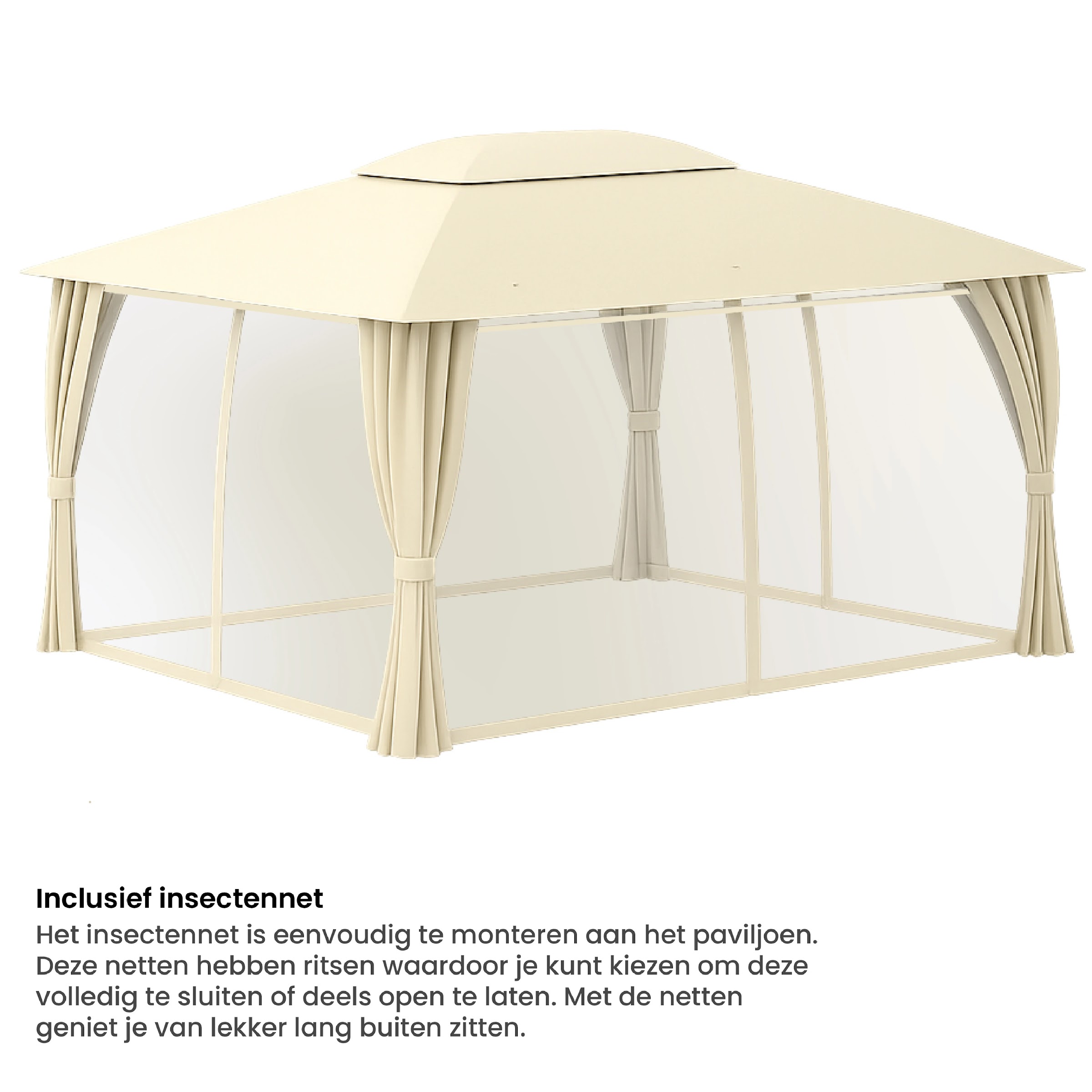 Inbegrepen: Frame, dakzeil, zijwanden en insectennet